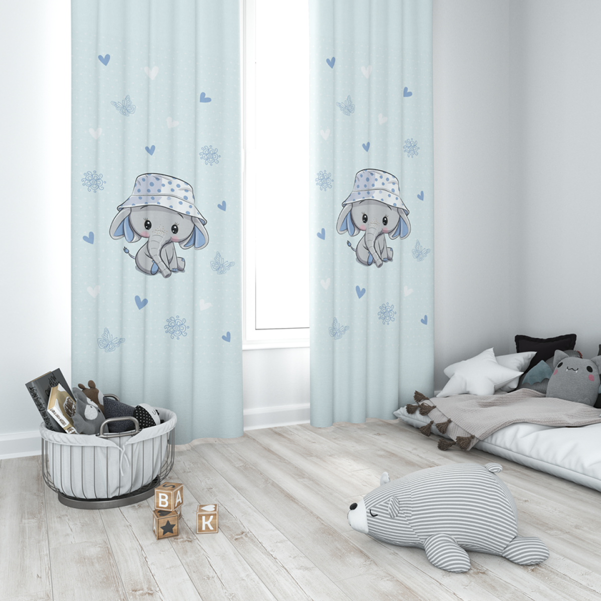 TAG-ek: Kék, Fány, elefántos, muszlin, babafüggöny, 140, x, 210, cm